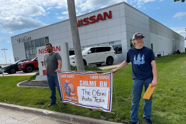 The auto dealership is remodeling their Mitsubishi sales facility with Catalyst Construction, a non-signatory contractor. The unions have been picketing the work site during the week and then informing to the public on the weekends.