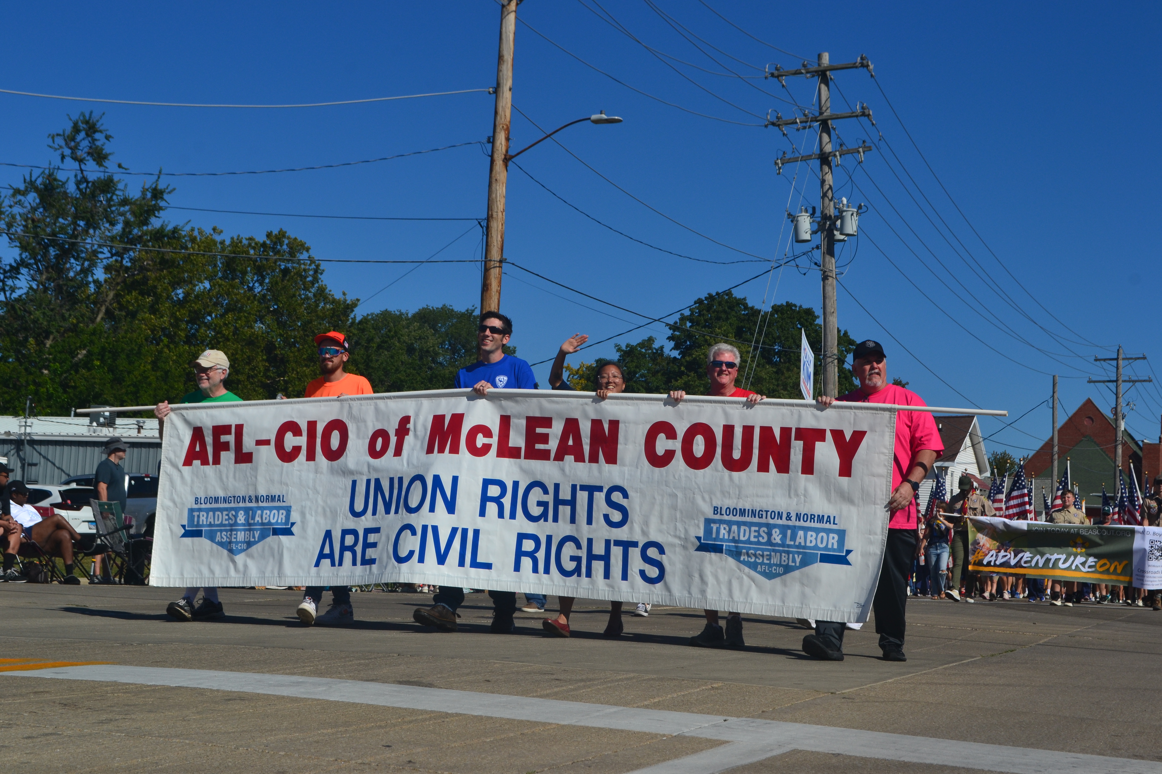 A bright day brought thousands to the streets to enjoy the 2025 Bloomington Labor Day Parade, featuring union marching units, Illinois State University's "Big Red Marching Machine," high school bands, local elected officials & community organizations.